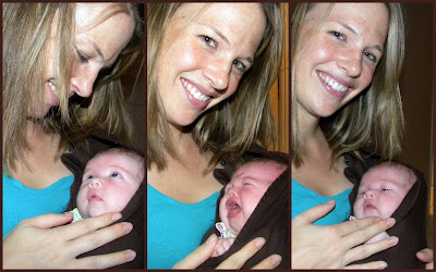 Unfortunately, the best picture of the kids, I have my eyes closed:( As you can see JJ loves to give kisses to "Baby eesie" and she definitely knows when "Big Brudder" is around and is starting to brace herself for all of the "love" he's going to give her:)